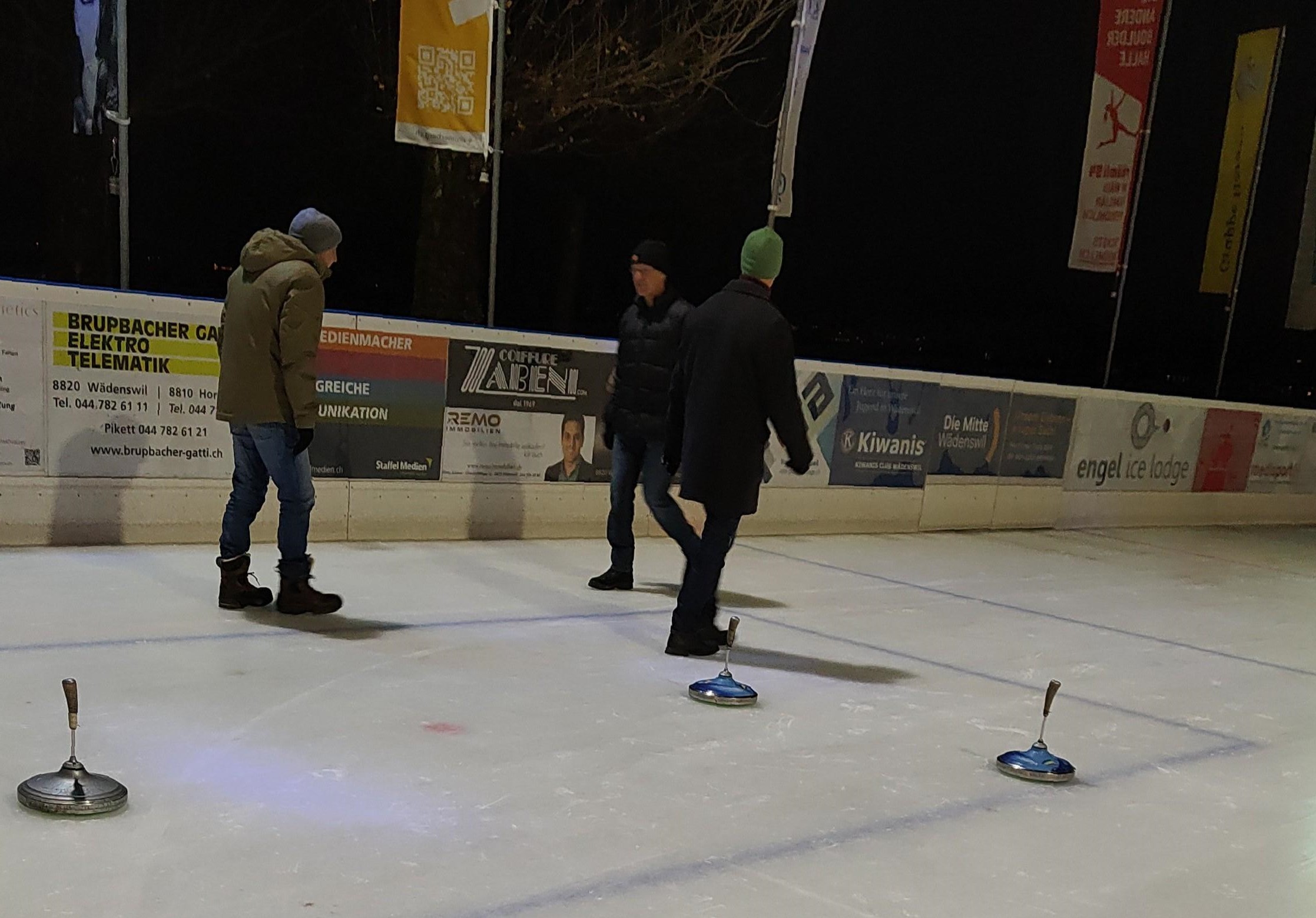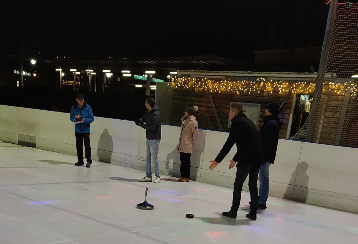 uns aufs Glatteis: Eisstockschiessen auf der Eisbahn am See war unsere letzte