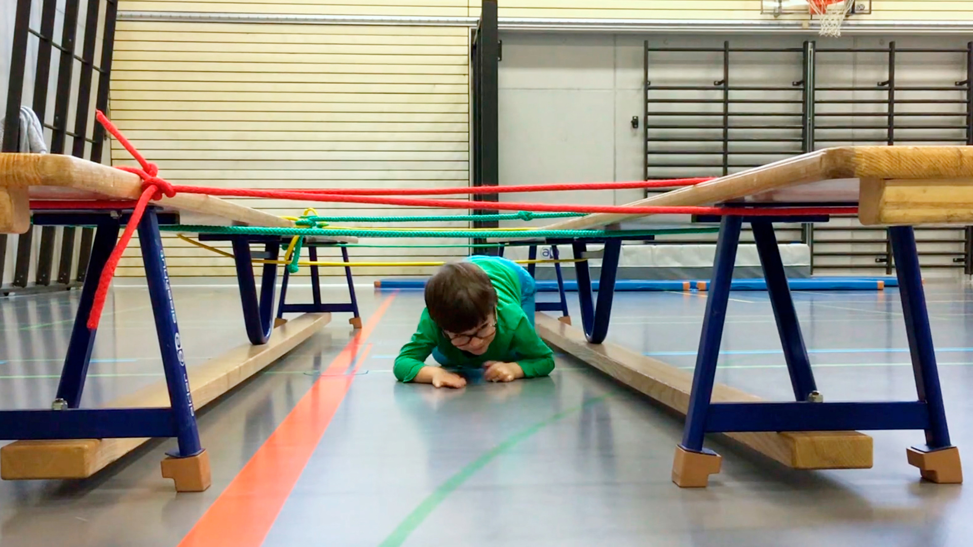 Bewegungsposten in alles Mögliche. Die Reckstangen werden zum Hühnerstall, das